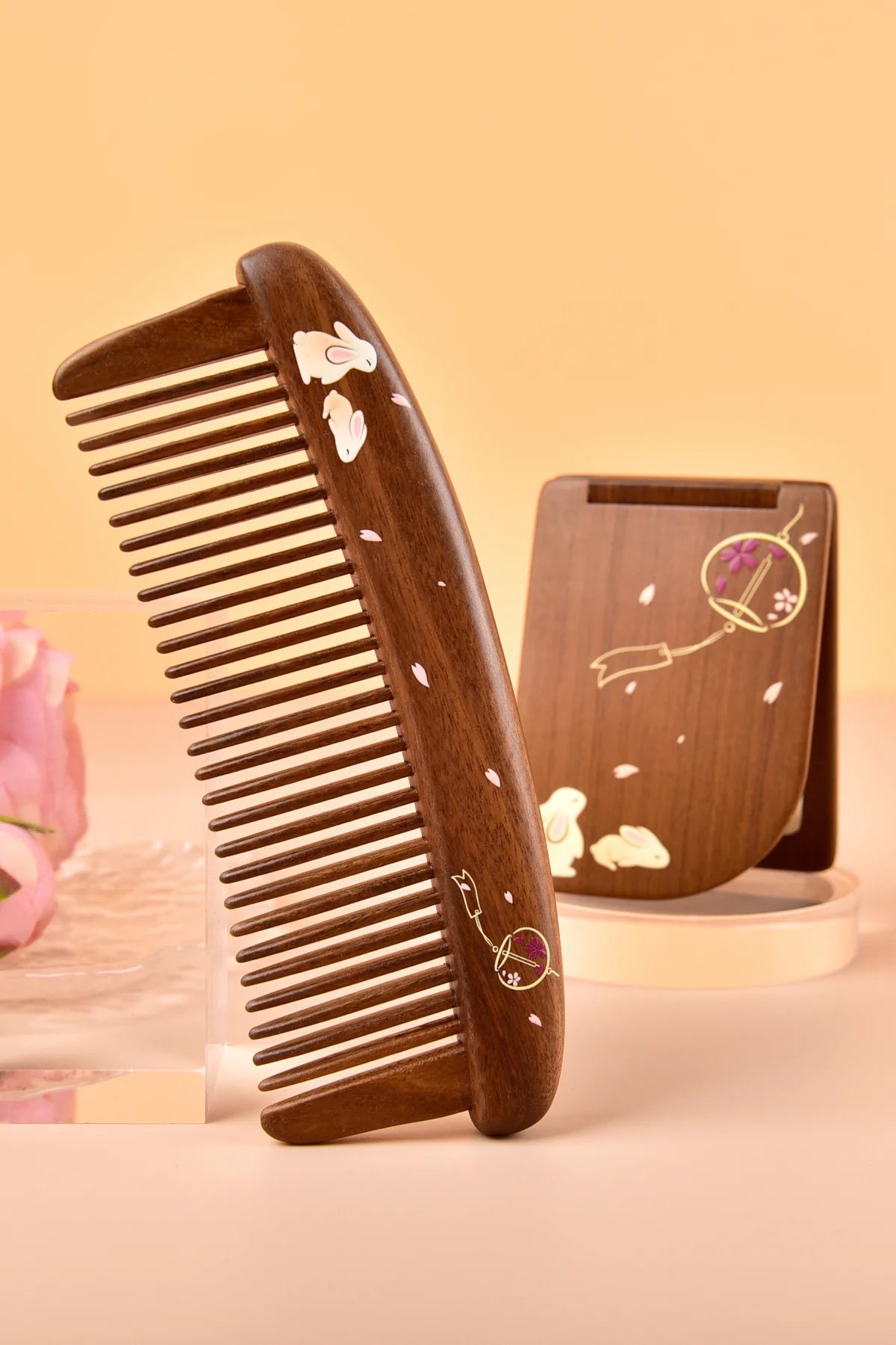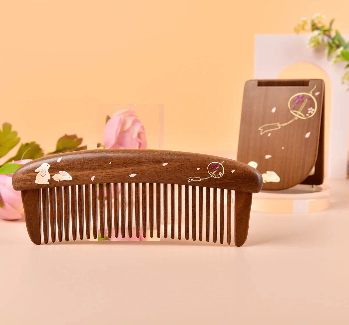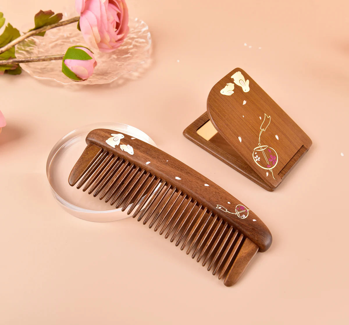 + Made from natural Tabebuia wood, well polished, smooth And seamless.+ Handcrafted and painted by craftsmen with decades' experience to ensure quality and one-of-a-kind hair comb.