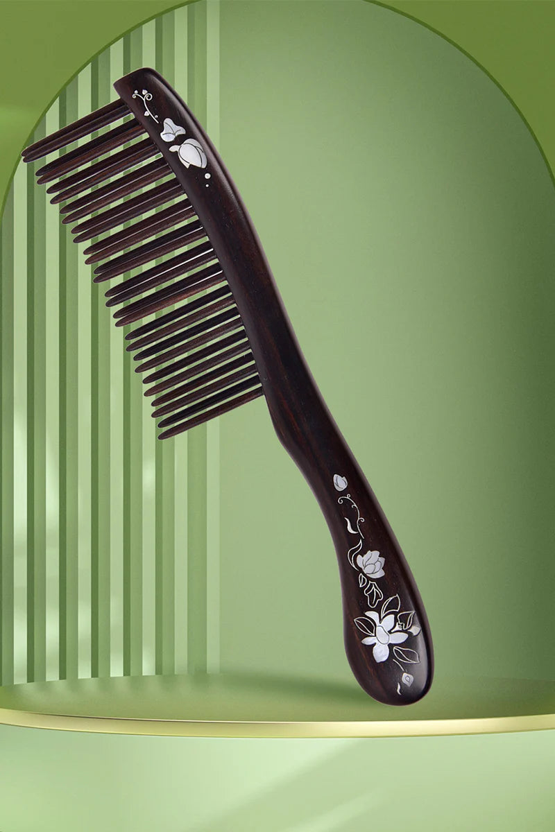 Tan Mujiang's tooth-inserted technology is granted a patent. To improve hair comb's durability and brushing experience, we succeeded in making such a functional hair comb after numerous experiments. The back of comb with inserted tooth is made from parallel-to-grain materials, which has great strength and not easy to break. Every tooth-inserted hair comb is made over 20 processes. It's great at detangling your hair.